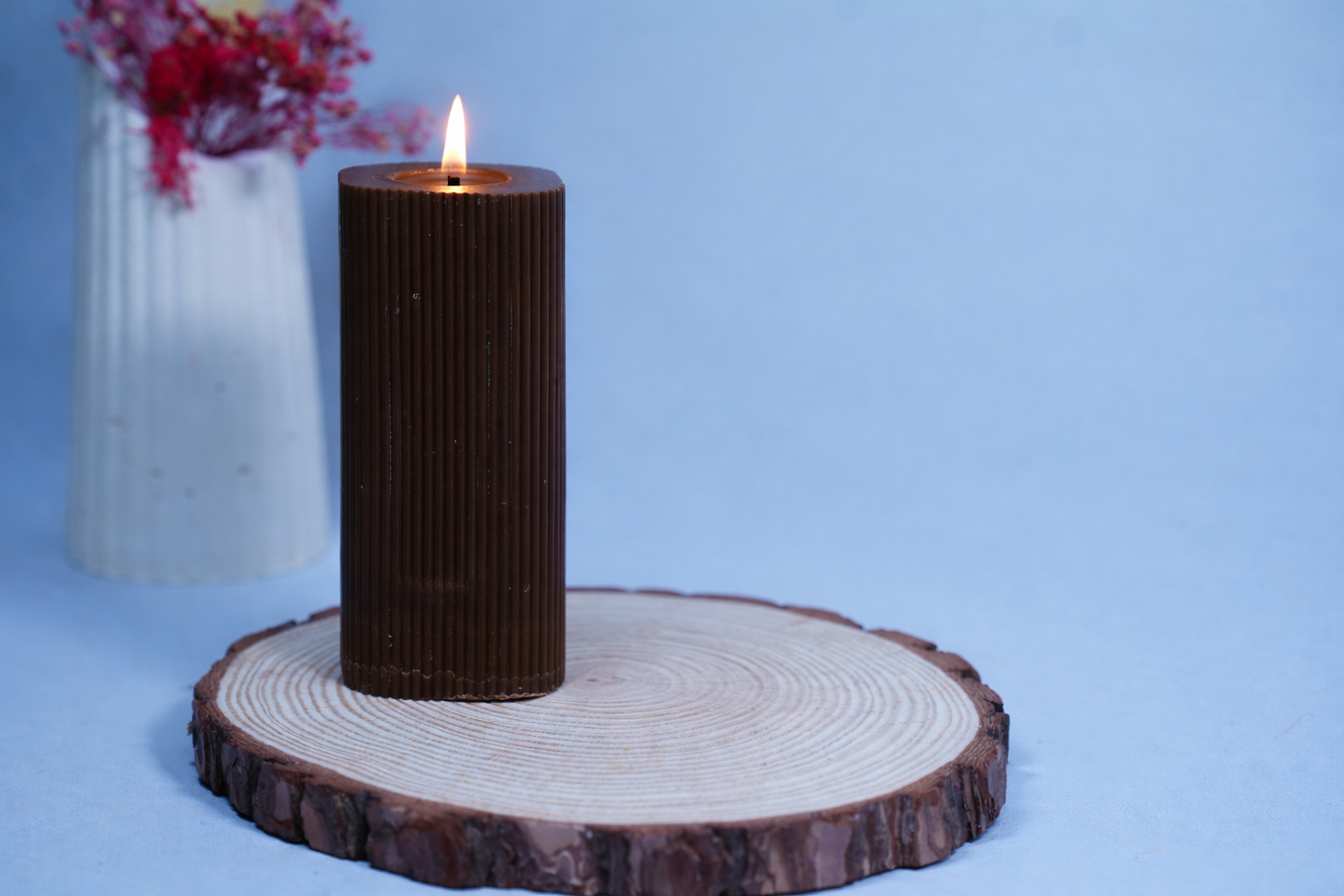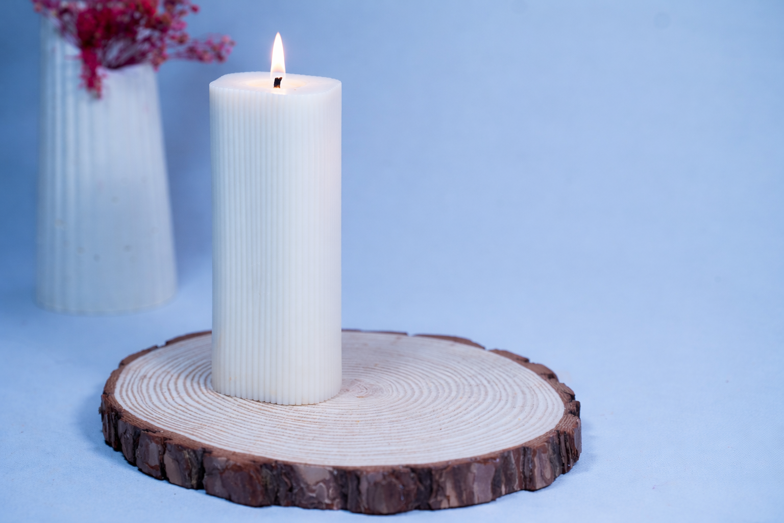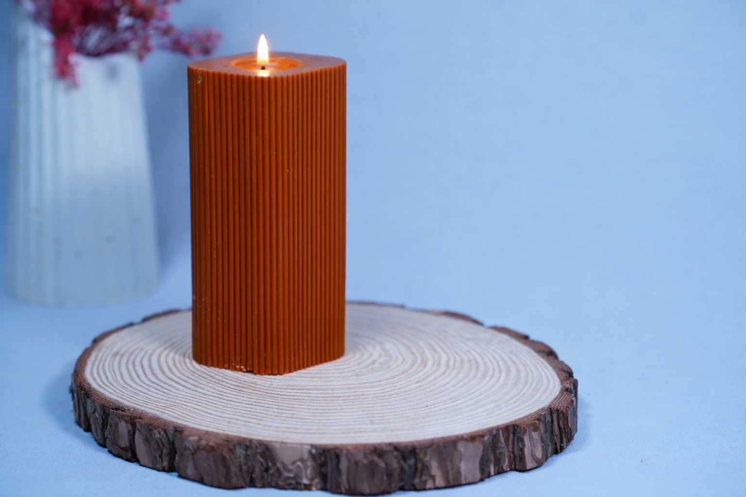 Crafted from natural soy wax and finished with a clean-burning cotton wick, this unscented candle is perfect for dining tables, sensitive noses, or layering with other home fragrances. The vertical ribbed texture catches the light beautifully, adding depth and character to your coffee table, mantle, or shelf.