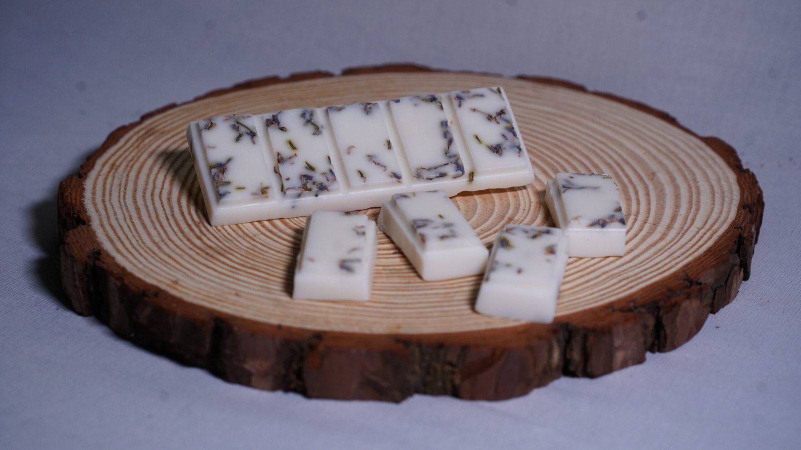 • Artisanal Aesthetics: Each melt is topped with real lavender botanicals. As the wax melts, the flowers float gracefully, creating a beautiful visual experience.